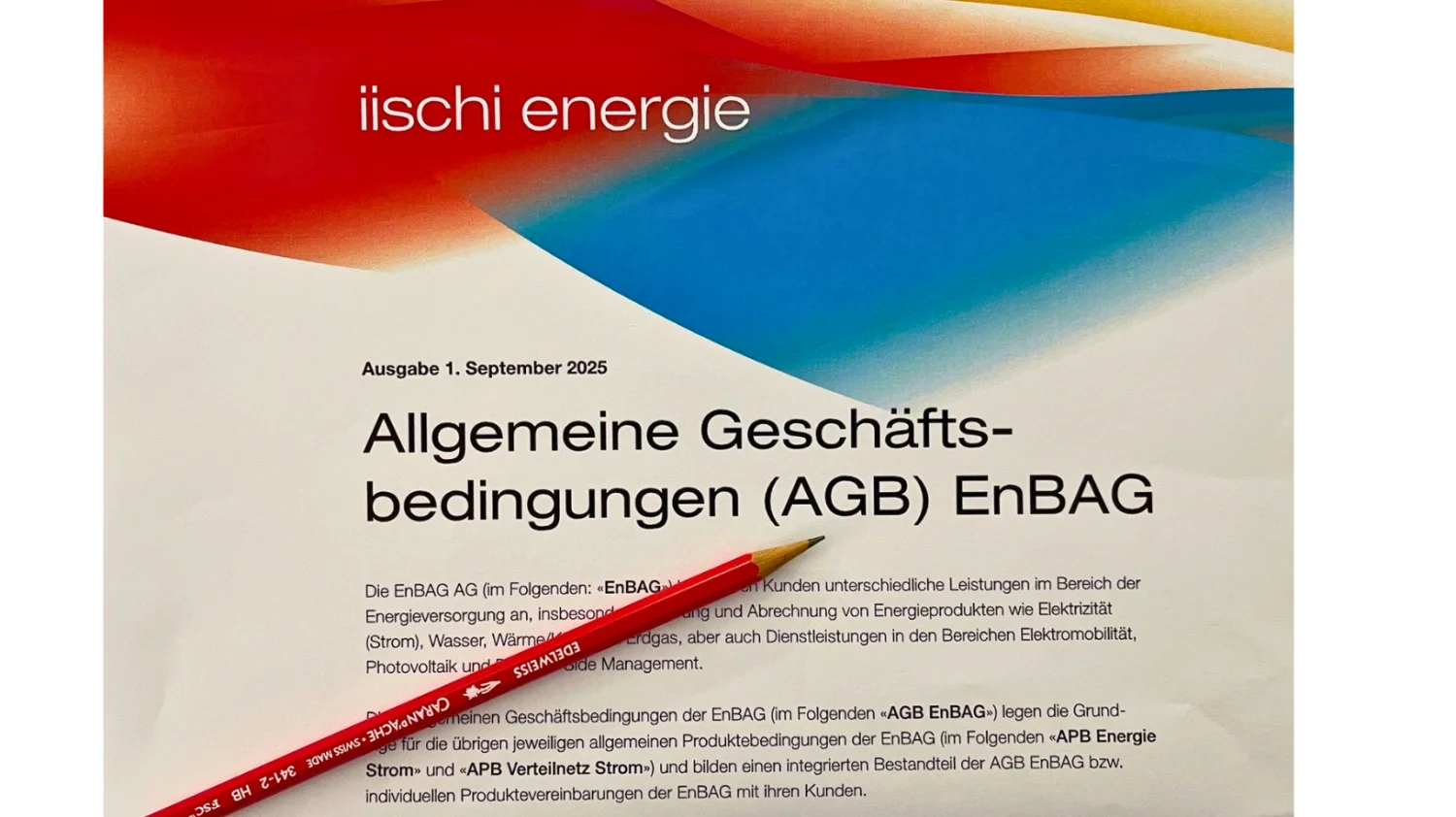 Die EnBAG AG hat ihre AGB modernisiert und verschlankt. Die neue Allgemeine Geschäftsbedingungen (AGB) gelten ab dem 01. September 2025. Diese finden Sie auf unserer Website unter https://www.enbag.ch/agb.
