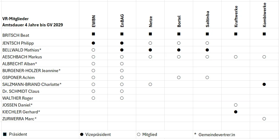 v.l.n.r.: Jonas Kalbermatten - Leiter Energie, David Wyder - Leiter Vertrieb & Stv. CEO, Gilles Russi - Leiter Netz - John Sieber - CEO & Leiter Finanzen a.i.